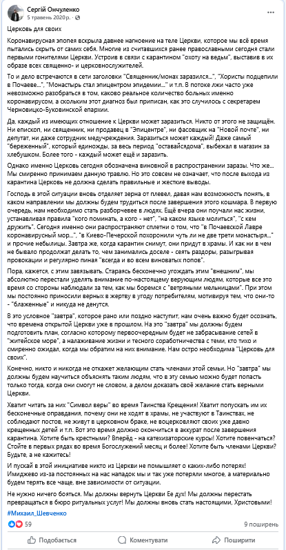 Діалог з отцем Сергієм Ончуленко наочно демонструє сучасну проблему багатьох представників УПЦ (МП): спробу знайти «третій шлях» між канонічною підпорядкованістю Москві та очевидним бажанням дистанціюватися від політичних наслідків цієї залежності. У цій позиції є внутрішня суперечливість: неможливо одночасно бути частиною єдиного організму (РПЦ) і стверджувати про свою незалежність від його голови. Богослов’я, побудоване на підміні понять (унія замість диптиху, «не указ» замість структурної автономії), невизначенні щодо ключових моральних питань війни та відмові чути біль української спільноти, на сьогодні є швидше інструментом політичної адаптації, ніж шляхом до істини та єдності в православ’ї. Це не богословська дискусія, а семантика для приховування незручної реальності.