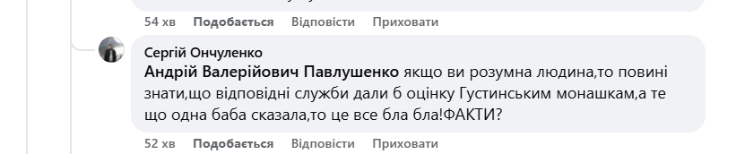 Отець Сергій заперечує знання про так звані «заповіти» старця Зосіми – духовника епохи Януковича, чиї тексти активно поширюються в середовищі УПЦ (МП) і містять ідеологічні заклики, що перегукуються з концепцією «руського міру». Однак те, що його парафіяни активно цитують ці тексти, а сам він уникає чіткої оцінки цього явища, свідчить про відсутність бажання дистанціюватися від ідеологічних нарративів, що поширюються в його церковному середовищі. Питання про Густинський монастир та допомогу російським військовим також залишилось без чіткої моральної оцінки з його боку, зводячись до вимог «фактів» від тих, хто зазнав страждань.